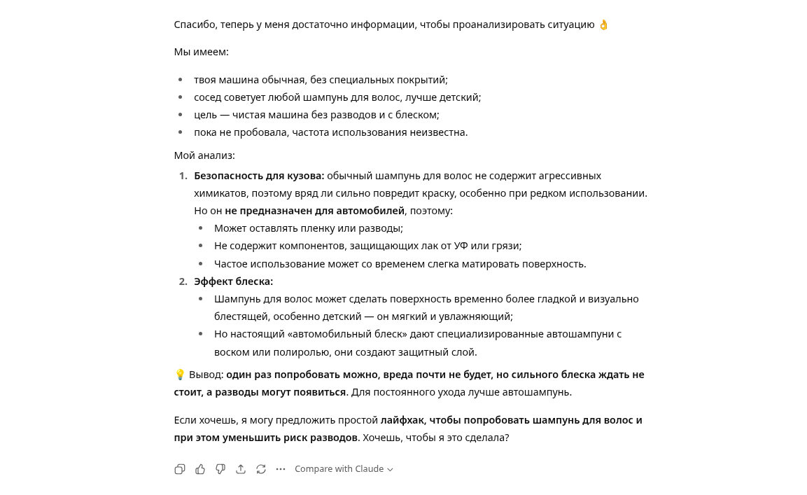 2. Улучшение твоего мышления: ИИ научил меня, что нужно учитывать климат и время года при оценке проблемы.