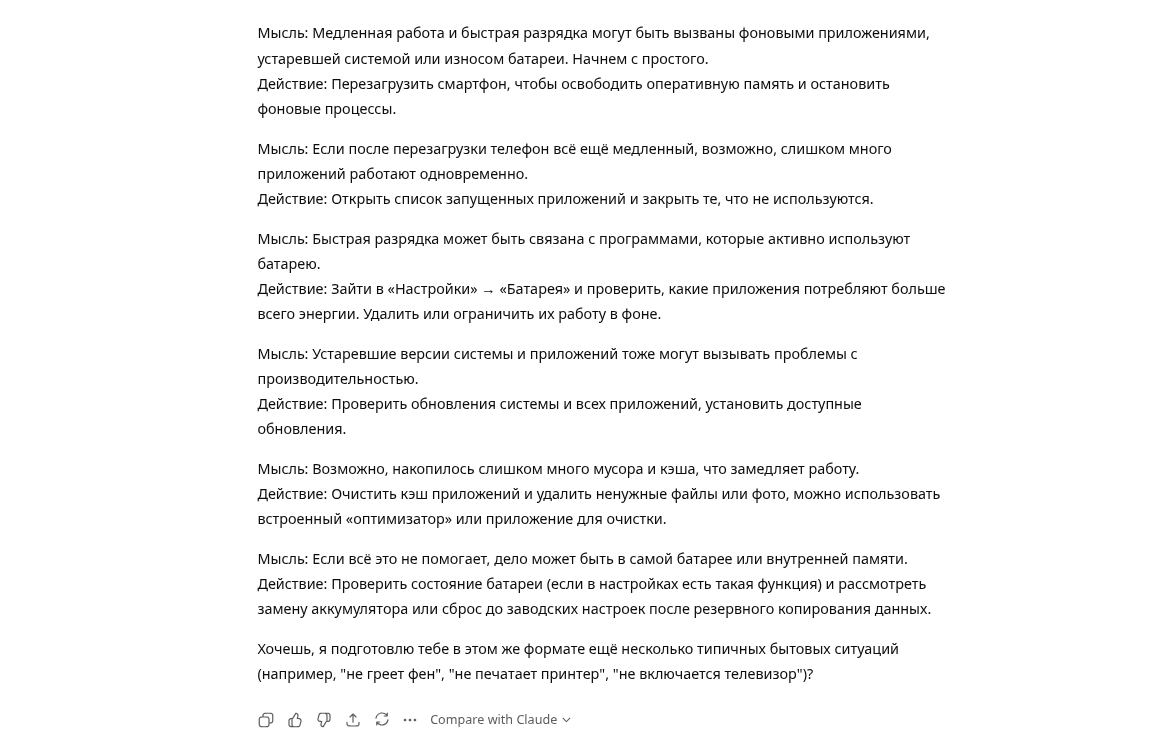 - Чёткость вывода: Вывод должен быть ясным и соответствовать тому, что вы ожидаете. Если нужны промежуточные шаги, используйте их.