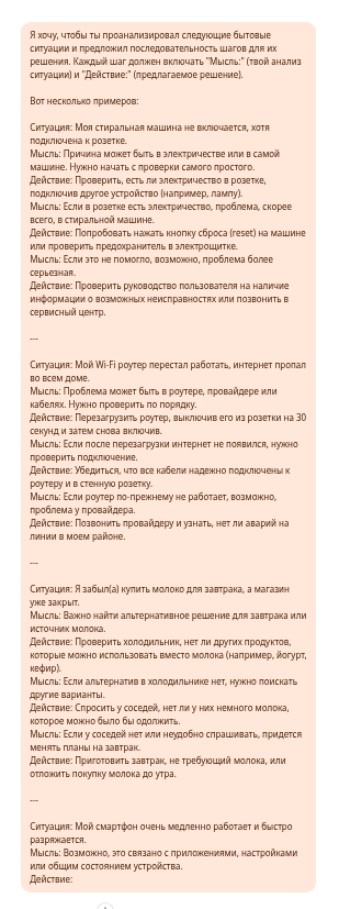 - Полнота входных данных: Убедитесь, что каждый «ввод» содержит всю необходимую информацию для ИИ, чтобы он мог принять решение, не «додумывая» слишком много.
