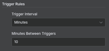Это стартовая точка всего рабочего процесса. Он отвечает за запуск автоматизации в заданное время или с определенной периодичностью (в моём случае задан интервал 1 раз в 10 минут). Это идеальный вариант для регулярного контента (например, «Картинка дня» для блога) и для полной автономности.