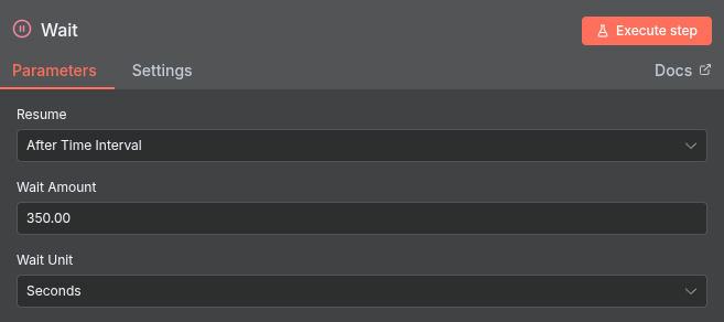 Приостановка выполнения workflow, пока генерация изображения не завершится. В моём случае (с моим железом), генерация занимала максимум 3 минуты, поэтому я поставила задержку на 350 секунд.