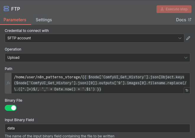 /home/user/n8n_patterns_storage/{{ $node['ComfyUI_Get_History'].json[Object.keys($node['ComfyUI_Get_History'].json)[0]].outputs['9'].images[0].filename.replace(/\.([^.]+)$/, '_' + Date.now() + '.$1') }}тут ещё я добавляю штамп времени к имени файла