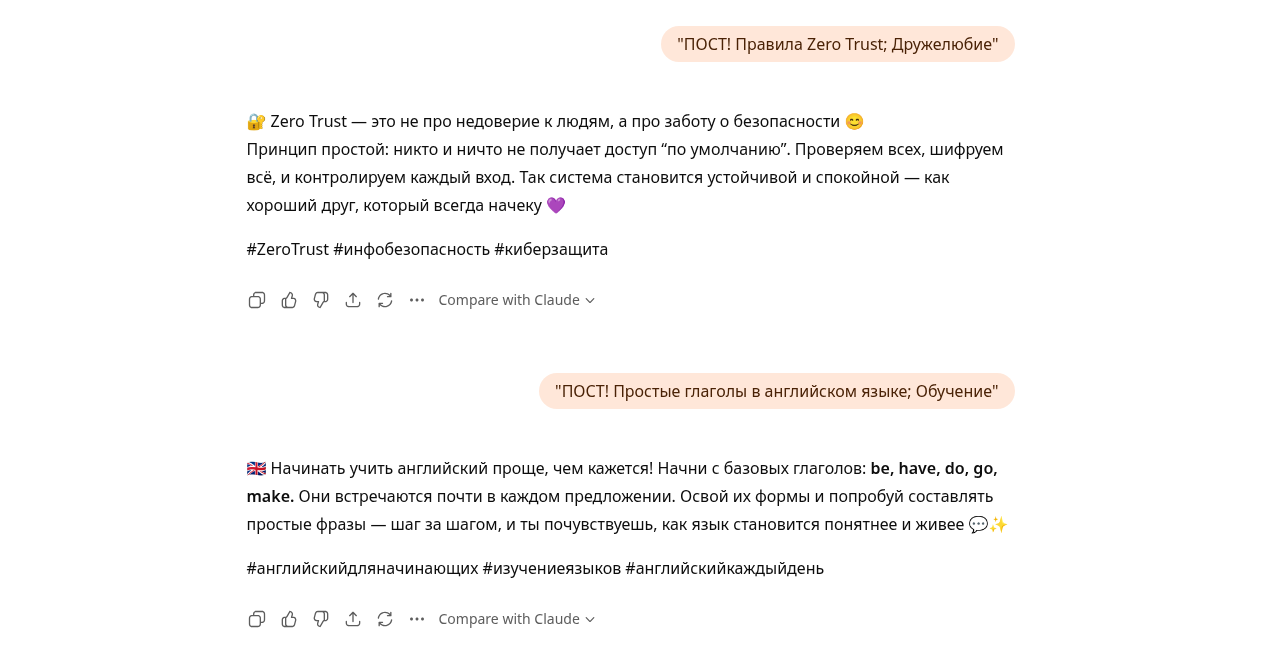 ИИ создаст позитивный пост о правилах Zero Trust (как ты учишь в блоге).